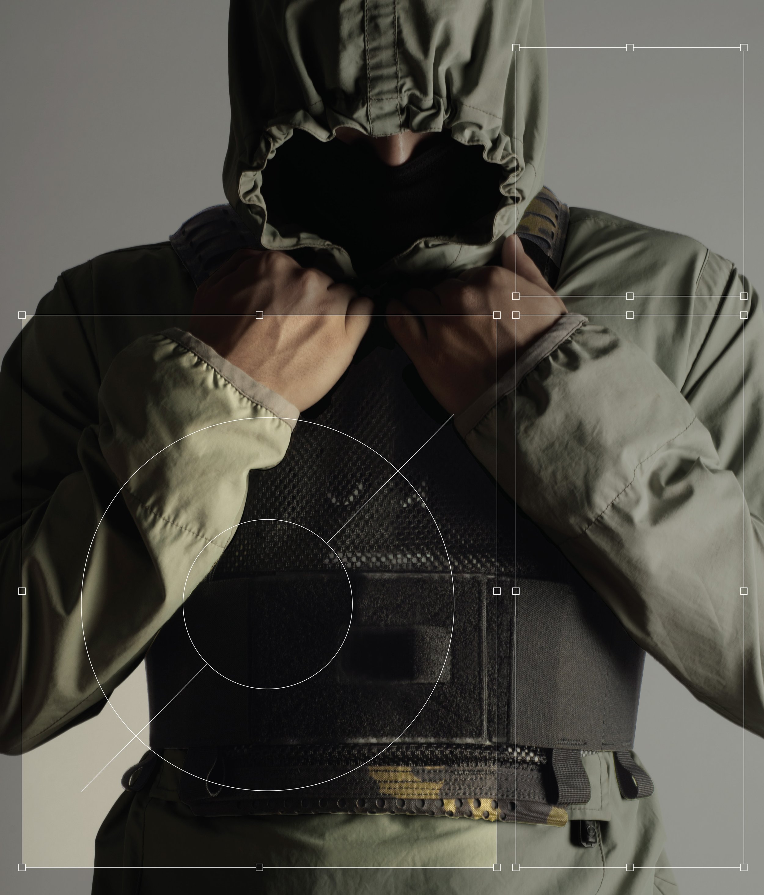 LOW PROFILE ERGONOMIC DESIGN > STOPS ALL HANDGUN THREATS > MULTI—THREAT DEFENSE